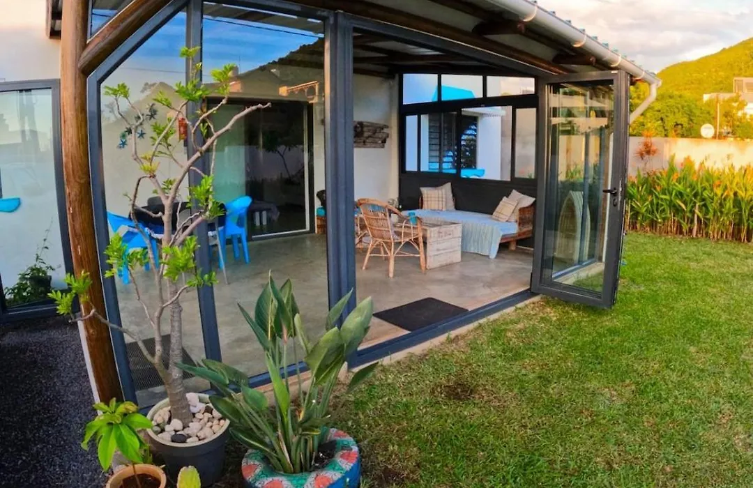 Situated 6 km from Ebony Forest Reserve Chamarel, Cozy 1 Room - Holiday Home Short Term Rental - La Gaulette Le Morne invites guests to relax at a terrace.